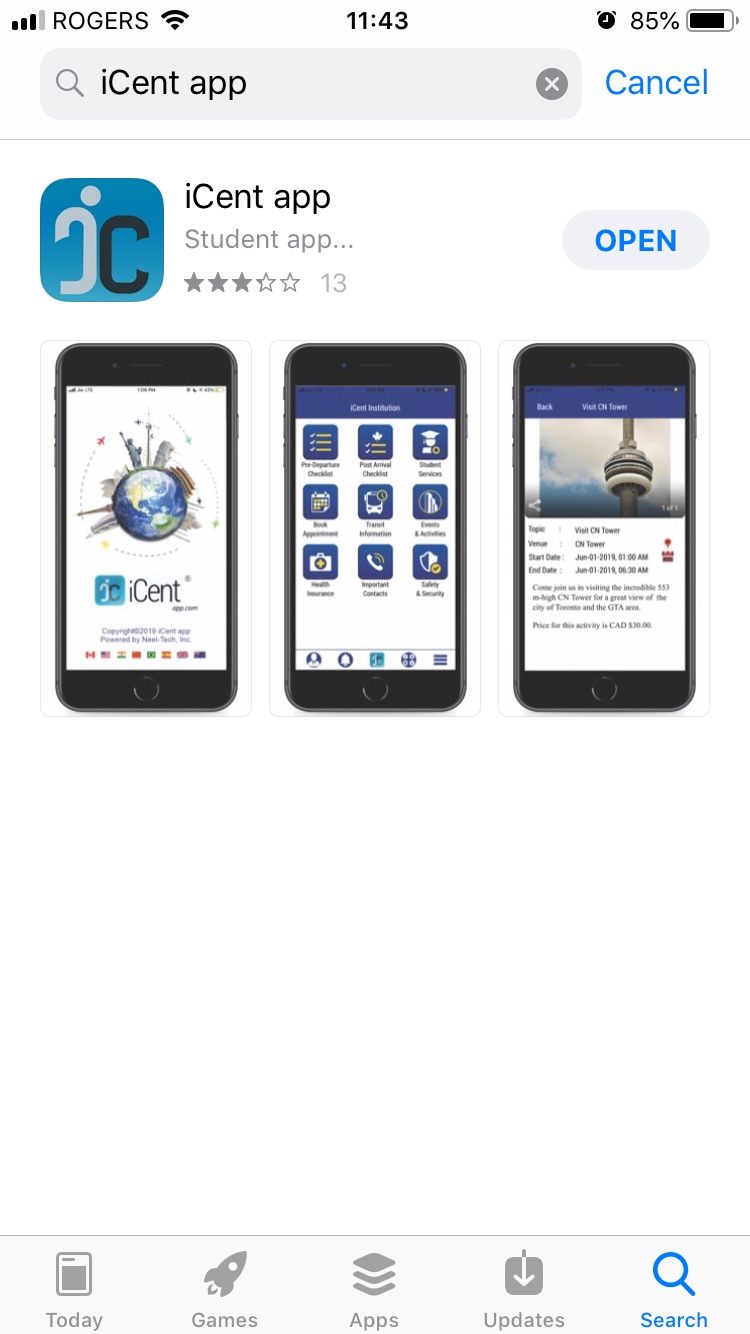 1. In the app store, search “iCent app” and install.