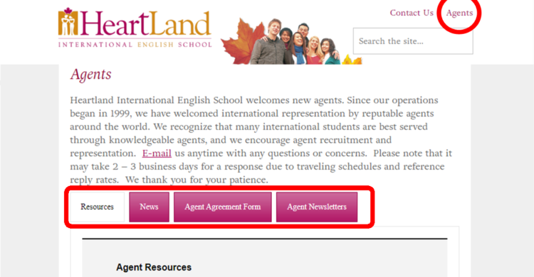 You will see when you access the Agent section of our website from the main page, you get a new list of resources and new tabs to help navigate the information: https://staging.heartlandenglish.com/agents/